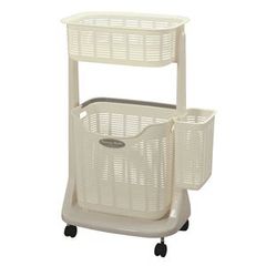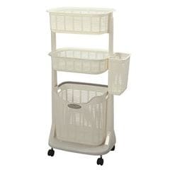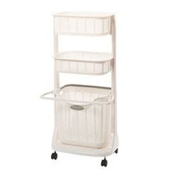 サンコープラスチック ランドリーバスケット 3段 バスマットハンガー付 BH-402【組立品】 【同梱不可】【代引不可】[▲][TP]