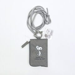 スヌーピー パス&コインケース ベージュ デスク刺繍 リール付き ICカードケース 定期入れ