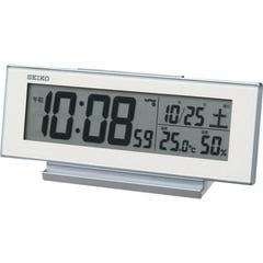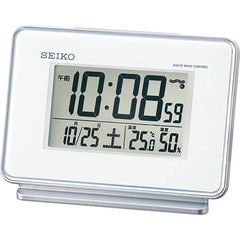 セイコー セイコークロック 目覚まし時計 置時計 デジタル 電波 銀色メタリック 102×175×81mm SQ322S
