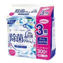 LIFEDOPLUS ウェットティッシュ 除菌シート アルコールタイプ 無香料 100枚入 3個パック ボトル詰替え用 リファイン 615723