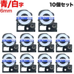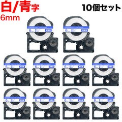 キングジム用 テプラ PRO 互換 テープカートリッジ SS6BW 白ラベル 強粘着 10個セット 6mm/白テープ/青文字