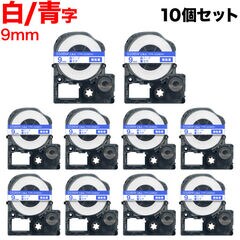 キングジム用 テプラ PRO 互換 テープカートリッジ SS9BW 白ラベル 強粘着 10個セット 9mm/白テープ/青文字
