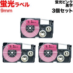 カシオ用 ネームランド 互換 テープカートリッジ XR-9FPK 蛍光ラベル 3個セット 9mm/蛍光ピンクテープ/黒文字