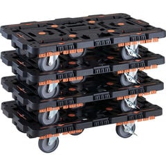 トラスコ中山 TRUSCO連結式樹脂製平台車ビートル900X600自在3輪内2輪ストッパー付柵付 BT900KJ3S2E100