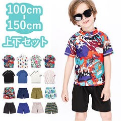 キッズ水着 ラッシュガード 半袖【A×ホワイト】【5T(100cm)】