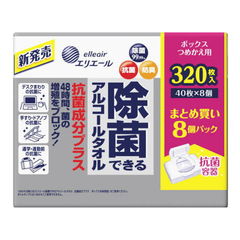エリエール 除菌できるアルコールタオル ウイルス除去用 ボックス つめかえ用 (40枚入*8個パック)