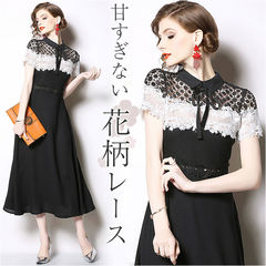 パーティードレス 花柄 レース mmpdress1214a【ブラック】【Lサイズ】