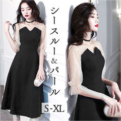パーティードレス ミディ丈 mmpdress1214c【ブラック】【XLサイズ】