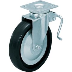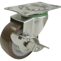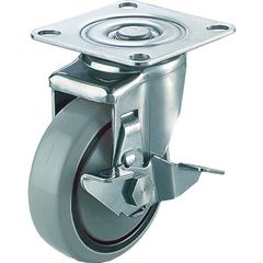 プレート式 自在 ステンレスキャスター ウレタン 車輪径130mm ストッパー付き J 取付寸法80×80(75×75)