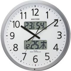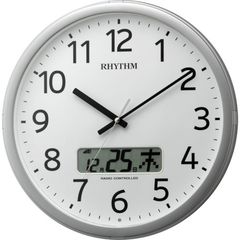 8MY462019 リズム(株) シチズン 電波 壁掛け時計(アナログ表示) 連続秒針 シルバー Φ350×50mm