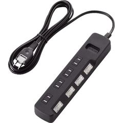 サンワサプライ アースピン折りたたみプラグ、防塵キャップ付き電源延長コード(3個口・5m) TAP-EX36B-5 【返品種別A】