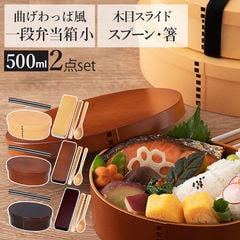 曲げわっぱ風 一段弁当 スリム&木目スライド スプーン・箸 18cm【ライトブラウン】