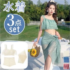 水着 リブニット 2点セット mmss213jj【カーキグリーン】【Lサイズ】