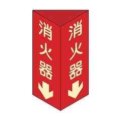 緑十字 消火器D(小) 消防標識消火器↓三角柱・蓄光タイプ240×80mm三角エンビ 013304