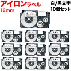 カシオ用 ネームランド 互換 テープカートリッジ アイロンラベル XR-12VWE 10個セット 12mm/白テープ/黒文字