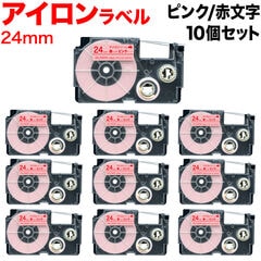 カシオ用 ネームランド 互換 テープカートリッジ アイロンラベル XR-24RWE 10個セット 24mm/白テープ/赤文字