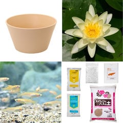 (ビオトープ)(めだか)はじめての睡蓮栽培セット ピンク サンライズ+睡蓮鉢+ヒメダカ+浮き草他 説明書付 本州四国限定 お一人様1点限り