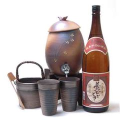 信楽焼・明山窯 焼酎サーバー 火色金小紋 2200cc(専用木台付き)+本格芋焼酎 夢のひととき1800ml