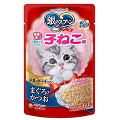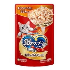 ユニ・チャーム 銀のスプーンパウチ 15歳頃から まぐろ・かつおにささみ入り 60g ギンノスプ-ンP15サイササミ60N 【返品種別B】