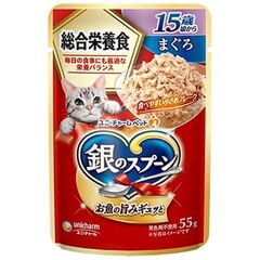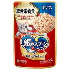 ユニ・チャーム 銀のスプーン パウチ 総合栄養食 まぐろ・かつおにかつお節入り 55g ギンPソウゴウエイヨウKブシ55G 【返品種別B】