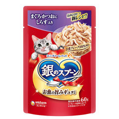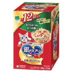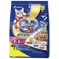 ユニ・チャーム 銀のスプーン 贅沢素材バラエティ毛玉ケアまぐろかつお白身魚味に天然小魚かつお節まぐろ味フレーク添え 1.1kg