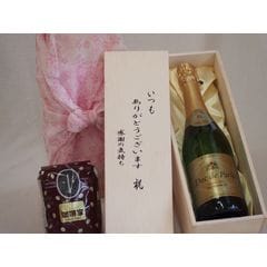 贈り物いつもありがとう木箱と珈琲豆セットオススメ珈琲豆(特注ブレンド200g)フランスボルドー金賞赤ワイン 750ml