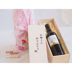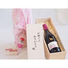 母の日 お母さんありがとう木箱セット ブルーサロッソ赤ワイン (イタリア) 750ml 母の日カードとカーネイション付