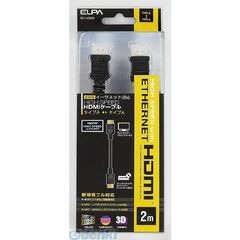 【納期:約1週間】朝日電器 ELPA DH-4020 イーサネットタイオウHDMIケーブル DH4020 2m A-A