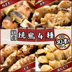 国産鶏 焼鳥4種セット 30本入(もも・ねぎま・かわ・ぼんじり) おうち居酒屋 焼鳥 鶏肉 国産