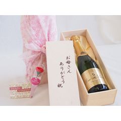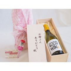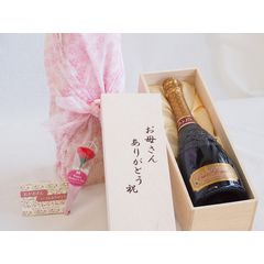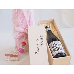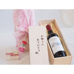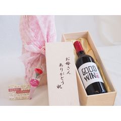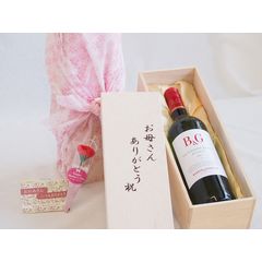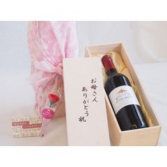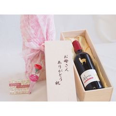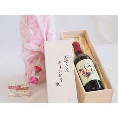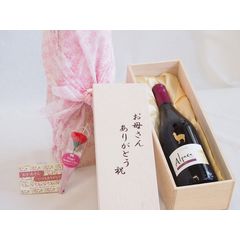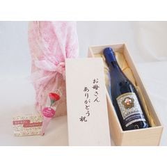 母の日 お母さんありがとう木箱セット ブルーサロッソ赤ワイン (イタリア) 750ml 母の日カードとカーネイション付