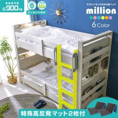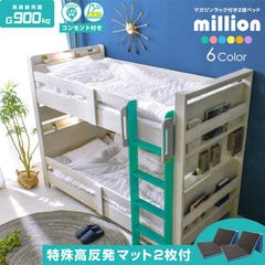 20選べる4色 二段ベッド 耐震300kg 2段ベッド シングルベッド シングルベット おしゃれ サローネ2 / ウォールナット / (エアーアートマットレス付) ーART