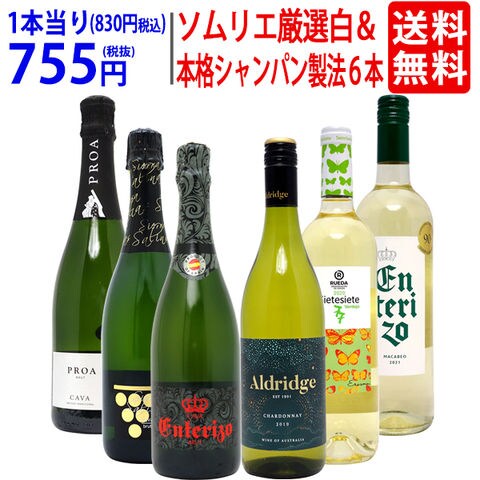 送料無料 ワイン ワインセット ソムリエ厳選白&本格シャンパン製法入り6本セット 白3本+泡3本 スパークリング ^W0NW82SE^