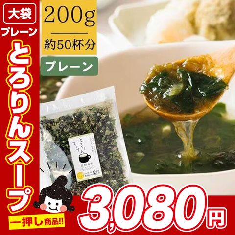 [大袋]とろりんスープ昆布と海藻プレーン味[50杯分] 200g×1袋 ポイント消化【週末限定23日まで★3080円→2001円セール】